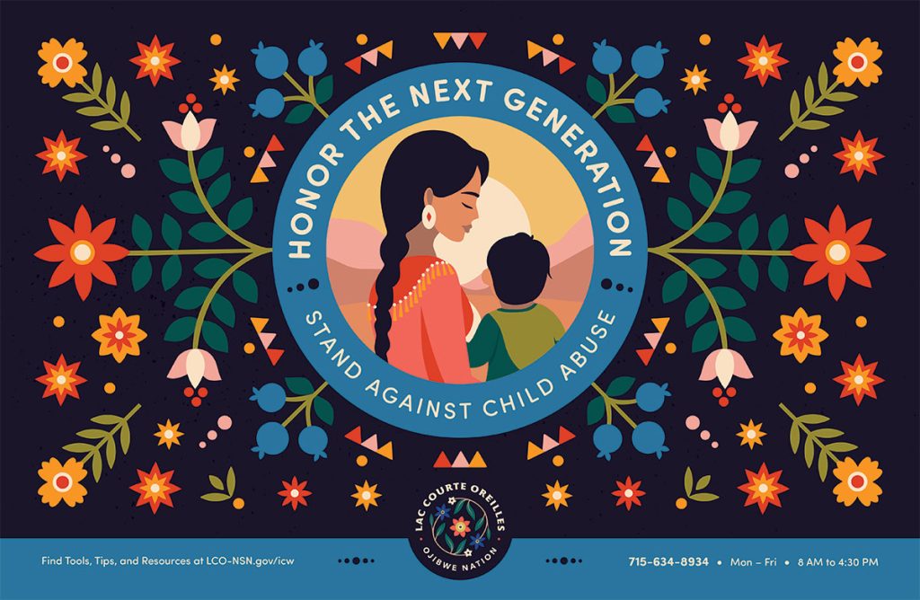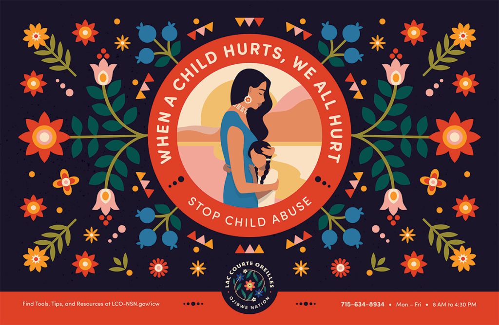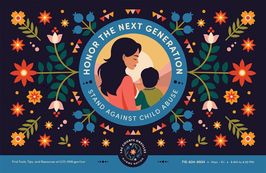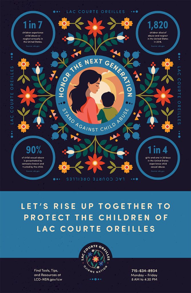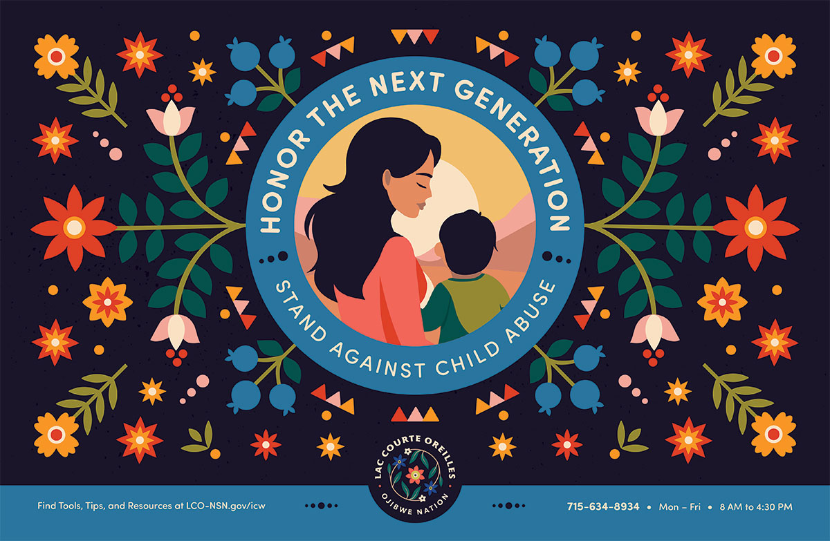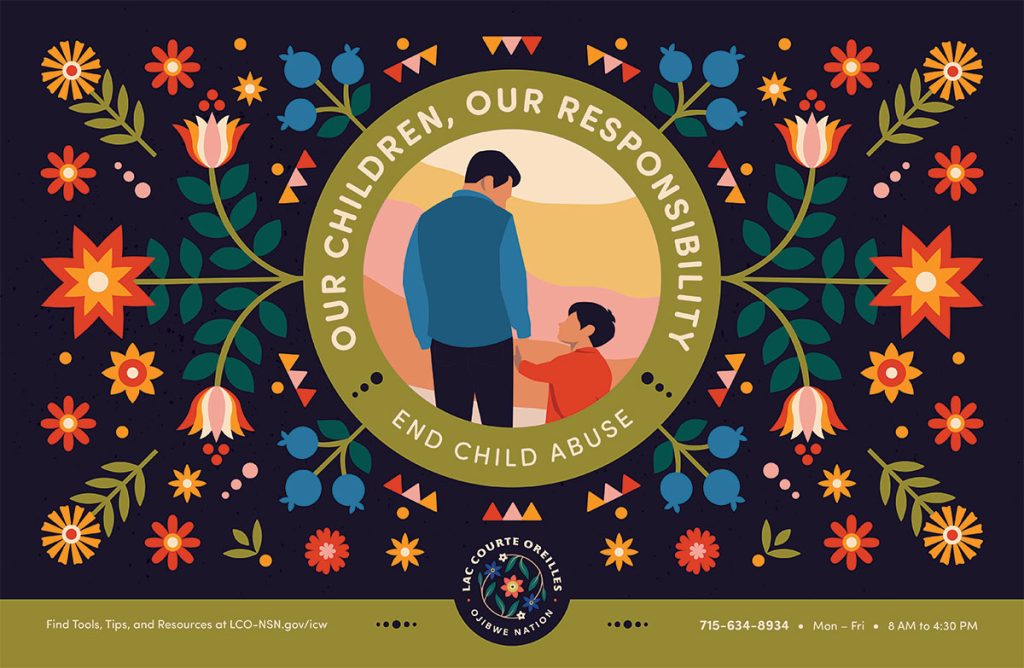 1. Download the Child Abuse Awareness for Lac Courte Oreilles Posters below and print them to post at your office, on community boards, or to email out to your network.